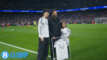 莫德里奇为马塞洛送上纪念球衣,皇马全队和现场球迷为他送上掌声。